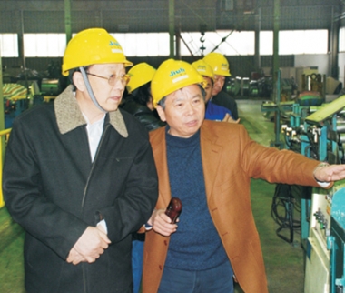 2007年2月,時(shí)任浙江省原副省長(zhǎng)金德水(左二)視察久立生產(chǎn)現(xiàn)場(chǎng)