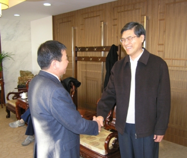 2006年12月,時(shí)任中國(guó)科學(xué)院院長(zhǎng)白春禮(左)在北京與周志江董事長(zhǎng)合影