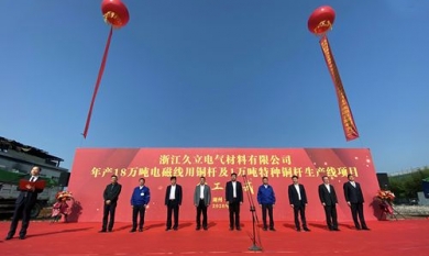 4月20日,集團(tuán)下屬子公司-浙江久立電氣材料有限公司年產(chǎn)18萬噸電磁線用銅桿及1萬噸特種銅桿產(chǎn)品生產(chǎn)線項目開工儀式在湖州安吉舉行。