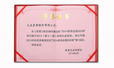 由《浙商》雜志推出的“2014浙商全國500強(qiáng)”排行榜于2014(第十一屆)浙商大會發(fā)布。